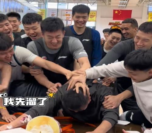 在简单抹蛋糕后,大家开始兴奋起来了。全部球员都在呼喊,因为每次过生日肯定都要经历这样的环节,在这种气氛下,全队都开始跃跃欲试了。