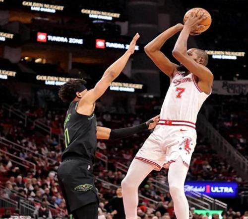 小贾的爆发并非偶然,而是厚积薄发。此前对阵公牛的关键战役中,正是他末节突然打开三分手感,直接带走比赛。今天面对鹈鹕,他更是从开局就火力全开,在杜兰特手感冰冷的情况下,成为球队最可靠的进攻箭头。过去1个月,小贾的状态确实起伏剧烈。他曾公开自责:“球队一度跌到附加赛边缘,很大程度上要怪我太铁了。如果我的命中率哪怕正常一点,火箭能多赢好几场。”